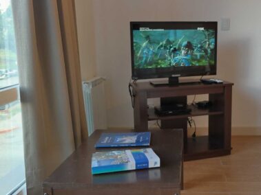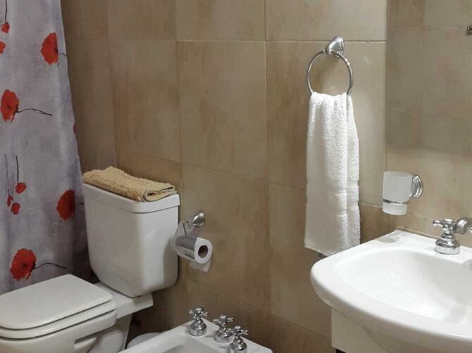 Esta unidad es un Monoambiente, se compone de un sommier matrimonial, capacidad máxima, 2 pasajeros, 3 con cama adicional, baño completo, cocina con vitroceramica, heladera, microondas, jarra hervidora y tostador